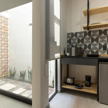 A Lofts Nueve - Centro Historico Queretaro Apartman vendégei számára felszerelt konyhasarok elérhető, így saját maguk is elkészíthetik ételeiket.